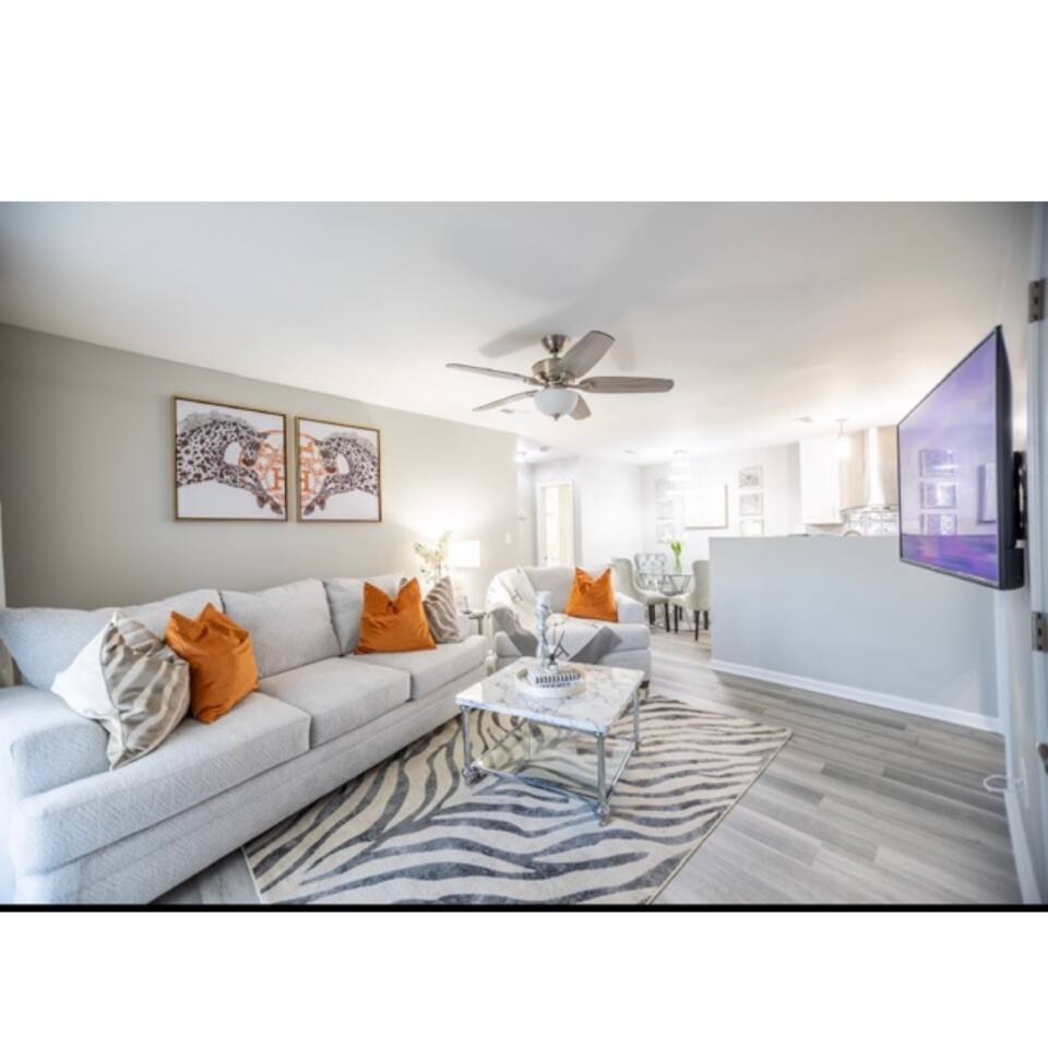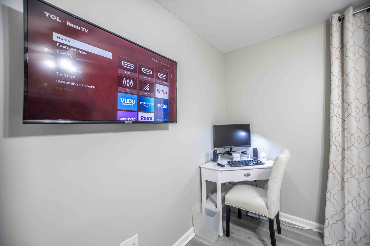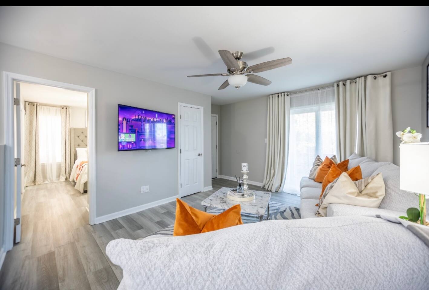 What makes us unique: → Keyless Entry → Free parking (Driveway for 2 cars and street parking available.) → Huge private backyard → Dusk to Dawn outdoor lighting → Located in a cul-de-sac → Fully stocked kitchen w/Keurig (complimentary coffee, hot chocolate, sweeteners and tea) Cookware, Bakeware, Blender, Toaster, Rice Cooker, and a Crock Pot → Kids Dinnerware → Complete carousel of 16 seasonings → Complimentary snacks, bottled water, and beverages → In-unit washer & dryer → Complimentary Laundry pods, Scent Boosters, Dryer Sheets, and Dishwashing pods. → Garment Steamer with an adjustable hanger (No more suitcase wrinkles!) → Iron, full size ironing board, spray starch → Basic toiletries included → Basic cleaning supplies → Central A/C + Heat → Ceiling fans in all rooms → 100% Blackout curtains in all rooms → Fast 2.4 and 5G WiFi → Smart TV’s in all rooms → Dedicated workspace in each bedroom (includes: LG Monitor HDMI/VGA connections, Wireless Keyboard&Mouse, Audio speakers, and an USB 4port hub. Additional USB ports are available on the power strip as well) → Pack ‘n Play → Diaper Genie Sleeping Arrangements: → Bedroom 1: Queen Bed → Bedroom 2: Queen Bed → Living room: Queen Sleeper Sofa We’re committed to delivering an exceptional experience, starting with CLEANLINESS. Our professional cleaning team sanitizes the entire home and all its contents after every guest stay.
