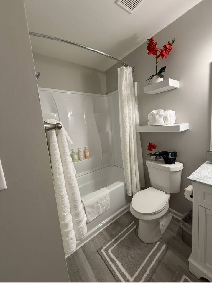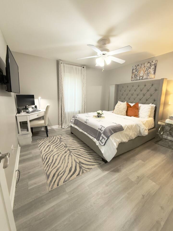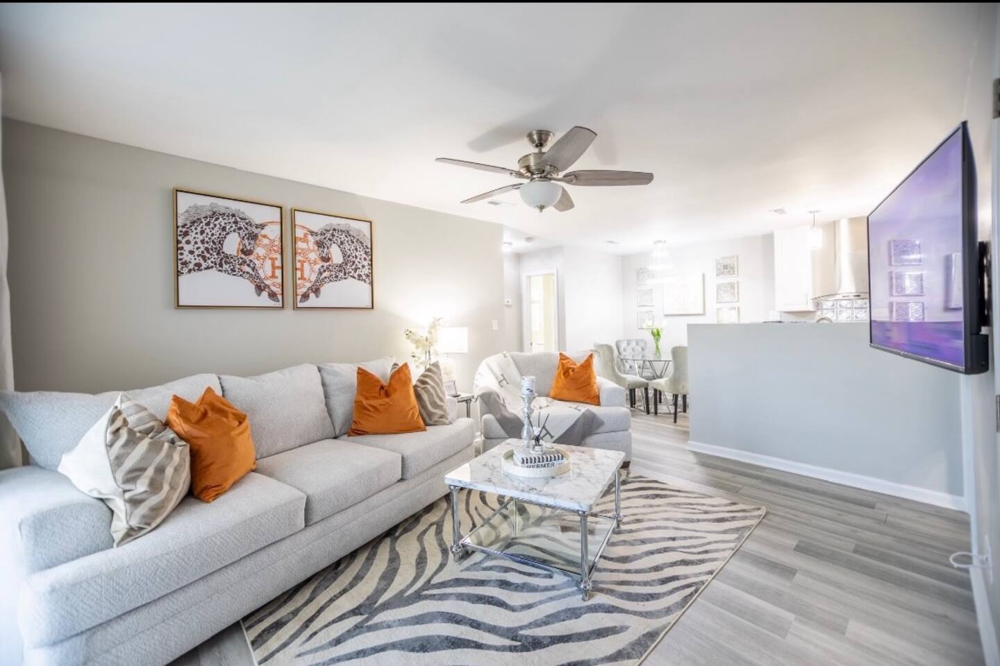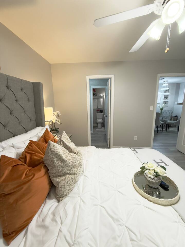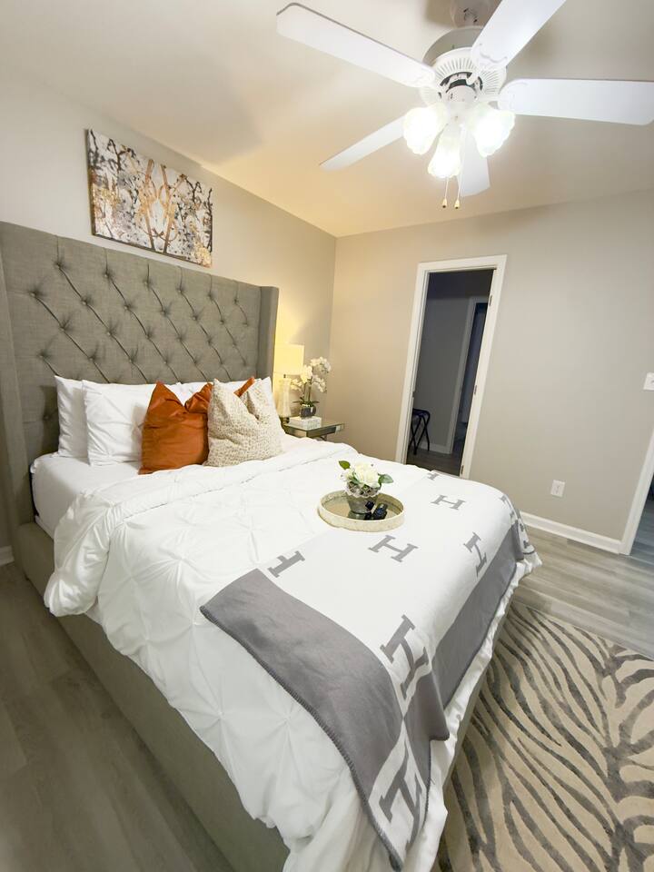 What makes us unique: → Keyless Entry → Free parking (Driveway for 2 cars and street parking available.) → Huge private backyard → Dusk to Dawn outdoor lighting → Located in a cul-de-sac → Fully stocked kitchen w/Keurig (complimentary coffee, hot chocolate, sweeteners and tea) Cookware, Bakeware, Blender, Toaster, Rice Cooker, and a Crock Pot → Kids Dinnerware → Complete carousel of 16 seasonings → Complimentary snacks, bottled water, and beverages → In-unit washer & dryer → Complimentary Laundry pods, Scent Boosters, Dryer Sheets, and Dishwashing pods. → Garment Steamer with an adjustable hanger (No more suitcase wrinkles!) → Iron, full size ironing board, spray starch → Basic toiletries included → Basic cleaning supplies → Central A/C + Heat → Ceiling fans in all rooms → 100% Blackout curtains in all rooms → Fast 2.4 and 5G WiFi → Smart TV’s in all rooms → Dedicated workspace in each bedroom (includes: LG Monitor HDMI/VGA connections, Wireless Keyboard&Mouse, Audio speakers, and an USB 4port hub. Additional USB ports are available on the power strip as well) → Pack ‘n Play → Diaper Genie Sleeping Arrangements: → Bedroom 1: Queen Bed → Bedroom 2: Queen Bed → Living room: Queen Sleeper Sofa We’re committed to delivering an exceptional experience, starting with CLEANLINESS. Our professional cleaning team sanitizes the entire home and all its contents after every guest stay.