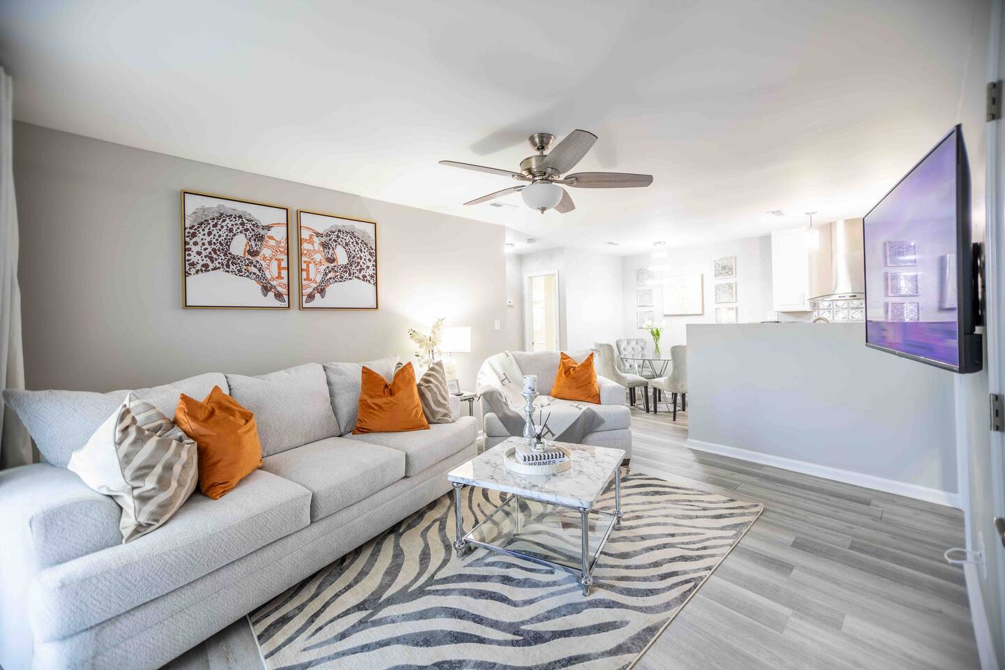 The Designer Magnolia Haven Experience comfort and style in this beautifully remodeled home, featuring a thoughtful split-bedroom layout for maximum privacy. Perfect for up to 5 adult guests. This home includes 2 queen beds and a queen sleeper sofa. Enjoy the outdoors with a spacious balcony and a wrap-around deck, complete with cozy outdoor furniture. Nestled in a peaceful cul-de-sac, this inviting retreat is just 4 miles from I-520 W/GA-415 W Hwy, offering easy access to nearby attractions.