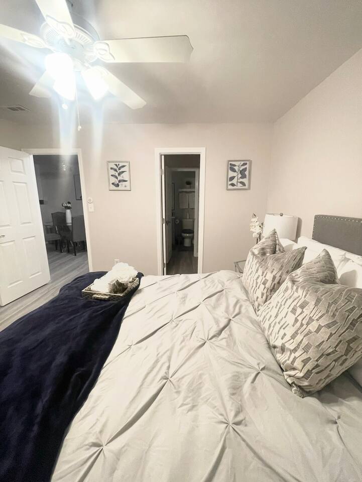 What makes us unique: → Keyless Entry → Free parking (Driveway for 3-4 cars and street parking available.) → Huge private backyard → Dusk to Dawn outdoor lighting → Located in a cul-de-sac → Fully stocked kitchen w/Keurig (complimentary coffee, hot chocolate, sweeteners and tea) Cookware, Bakeware, Blender, Toaster, Rice Cooker, and a Crock Pot → Kids Dinnerware → Complete carousel of 16 seasonings → Complimentary snacks, bottled water, and beverages → In-unit washer & dryer → Complimentary Laundry pods, Scent Boosters, Dryer Sheets, and Dishwashing pods. → Garment Steamer with an adjustable hanger (No more suitcase wrinkles!) → Iron, full size ironing board, spray starch → Basic toiletries included → Basic cleaning supplies → Central A/C + Heat → Ceiling fans in all rooms → 100% Blackout curtains in all rooms → Fast 2.4 and 5G WiFi → Smart TV’s in all rooms → Dedicated workspace in each bedroom (includes: LG Monitor HDMI/VGA connections, Wireless Keyboard&Mouse, Audio speakers, and an USB 4port hub. Additional USB ports are available on the power strip as well) → Pack ‘n Play → Diaper Genie Sleeping Arrangements: → Bedroom 1: Queen Bed → Bedroom 2: Queen Bed → Living room: Queen Air Mattress We are dedicated to providing an exceptional experience, starting with CLEANLINESS. Our professional cleaning team ensures the entire home and all its contents are thoroughly sanitized between each guest stay.